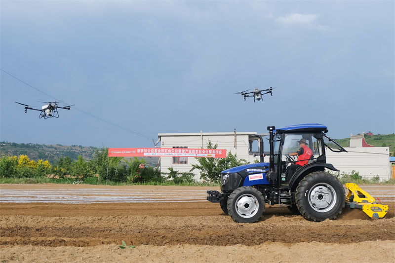 最后在農機作業示范田,新茶飲公益基金代表現場觀摩了農機服務隊開展農機作業,只見新型旋耕覆膜一體機高效完成整地作業、植保無人機精準實施肥料噴灑,整套作業流程較傳統人工耕種方式的效率大大提升。